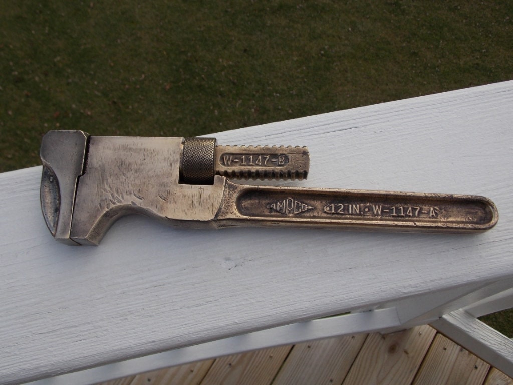 This is an awesome wrench in good working order and great looking too.This wrench is brass so it is non sparking .Made in the USA by AMPCO.This wrench has been cleaned and polished and is ready for work or wall.