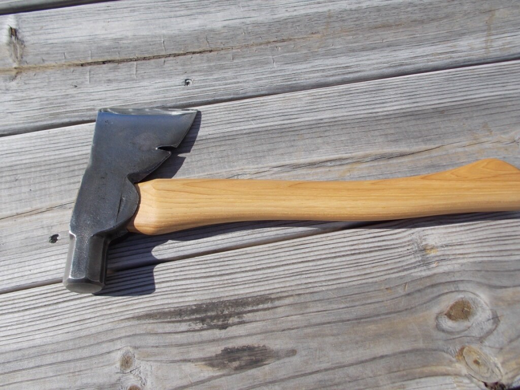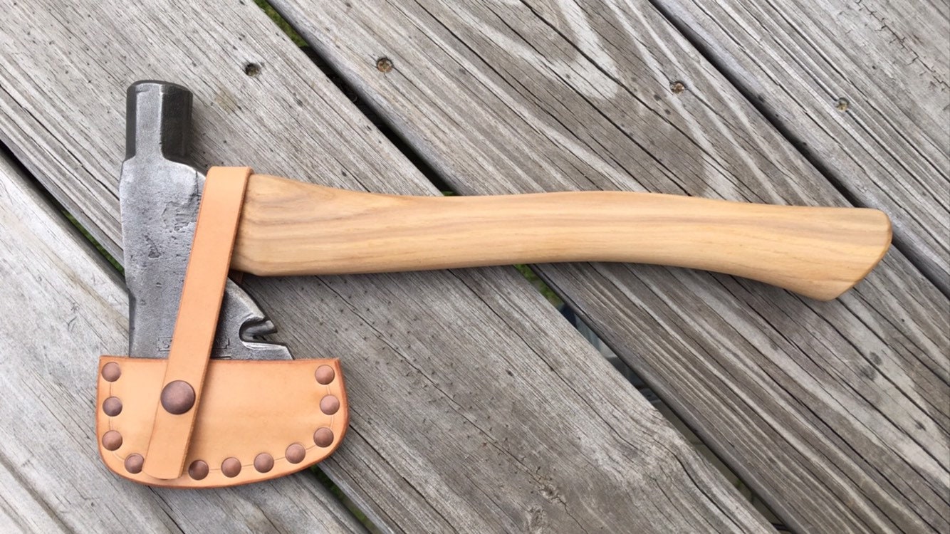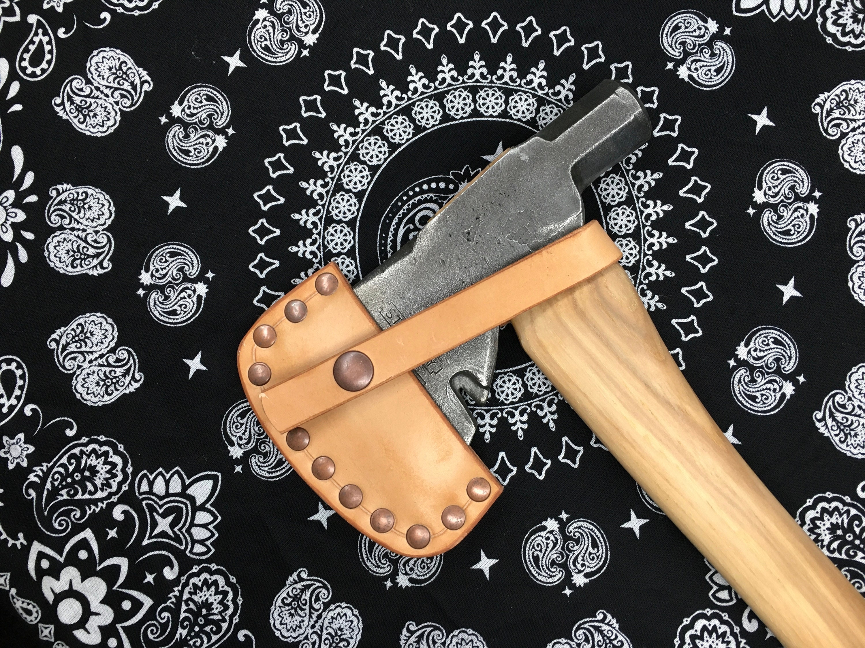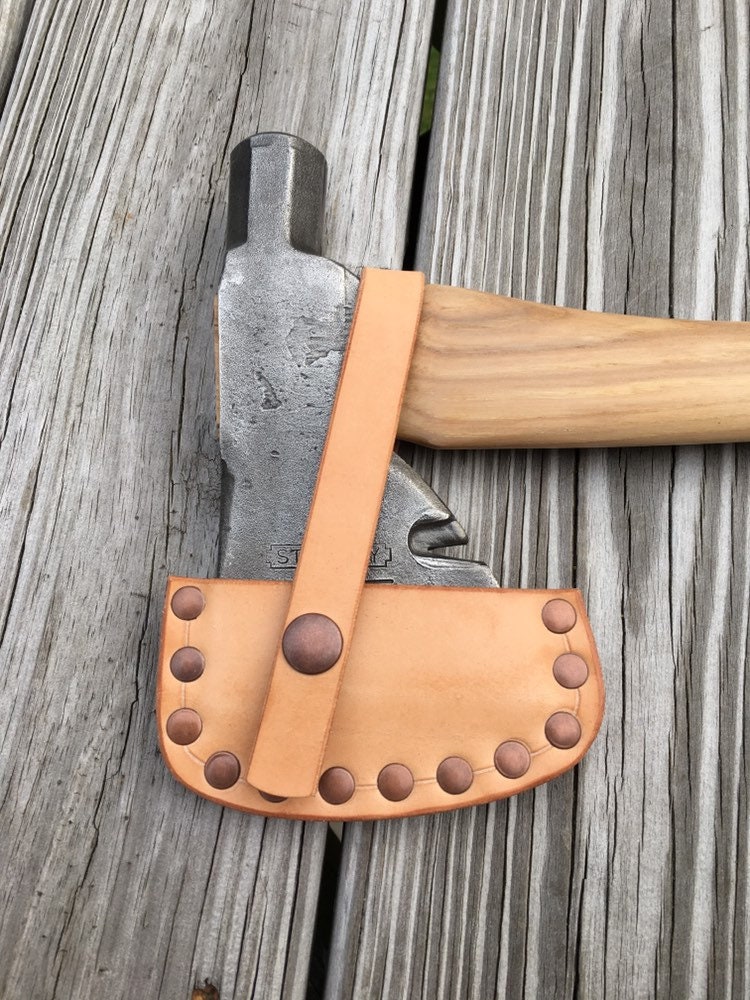 Stanley hatchet has had the rust removed and the edge sharpened.The handle is new of American Hickory .The handle has been sanded smooth and treated with orange oil and beeswax.Comes with a handmade leather sheath.