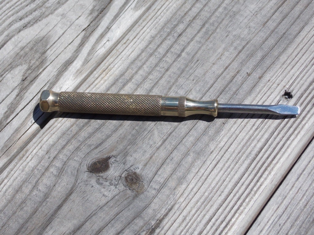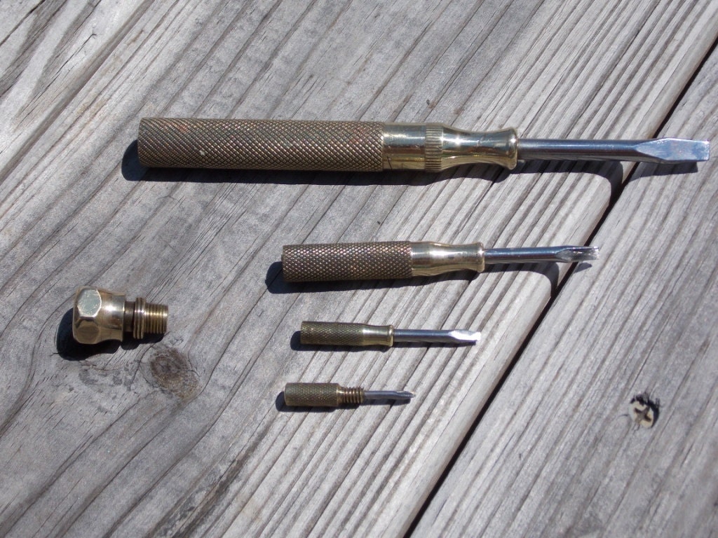Vintage brass nesting screwdriver in overall good condition .Made in the USA Overall length is 6 inch .Total of 4 screwdrivers nested.