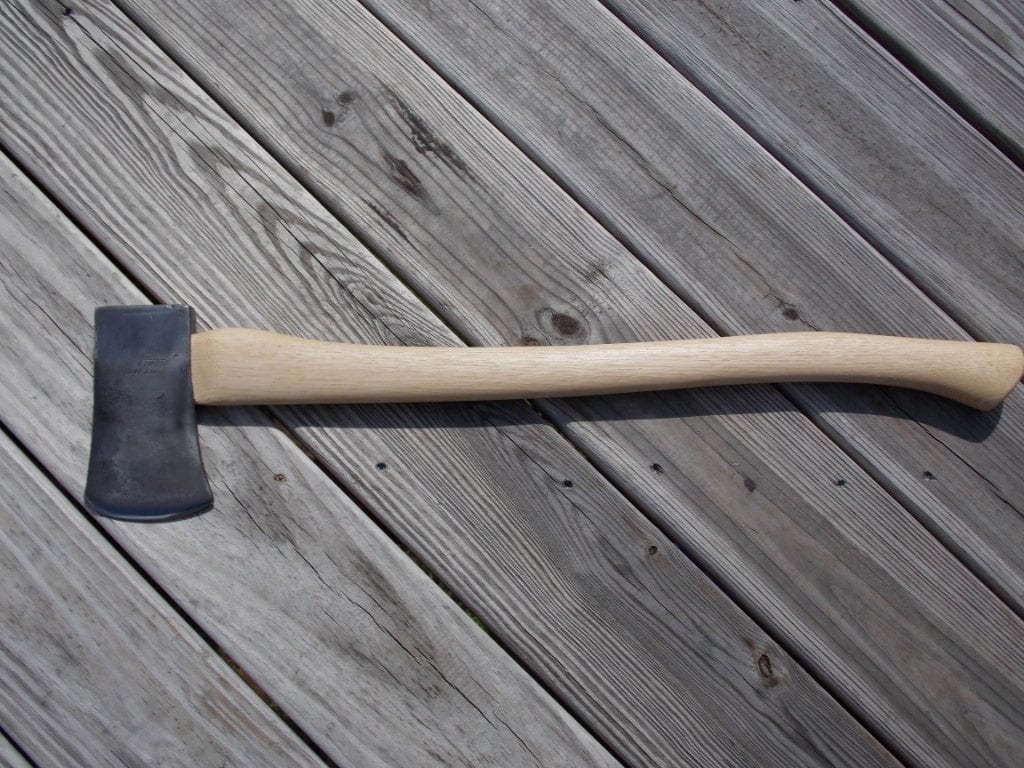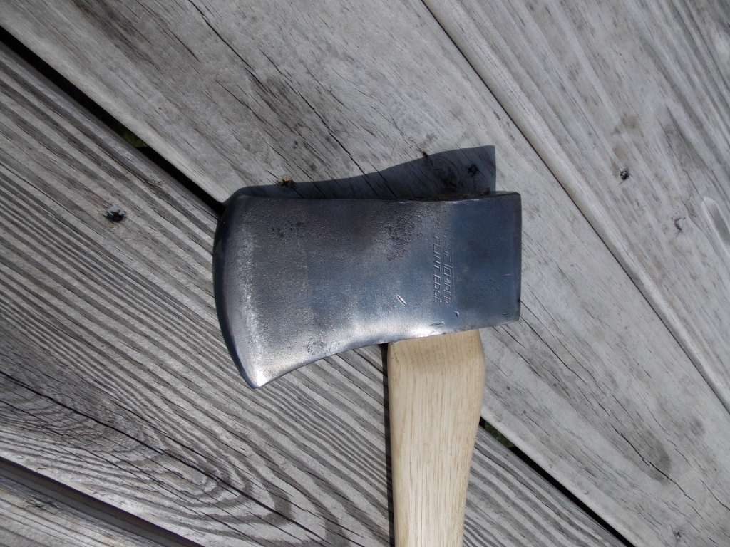 True Temper Flint Edge boy's axe has been cleaned of rust and the edge sharpened .The new 27 inch American Hickory handle has been hand sanded smooth and hand rubbed with orange oil and bees wax.Comes with a handmade leather sheath .