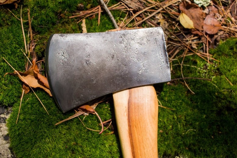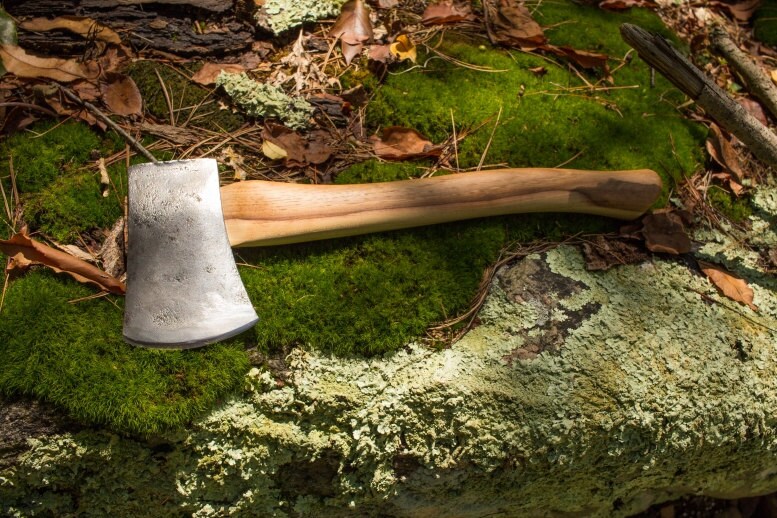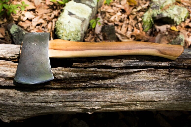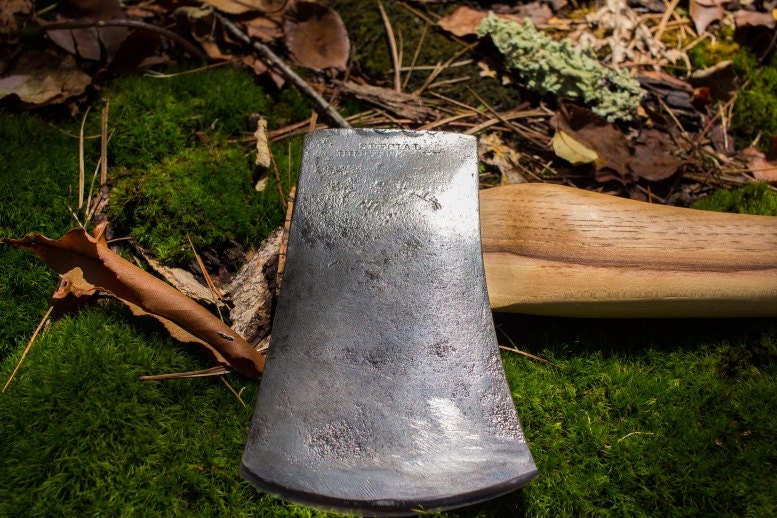 Vintage axe marked Special hunting axe has had the rust removed and the edge sharpened.The new American Hickory handle has been hand sanded smooth and hand rubbed with orange oil and beeswax.Comes with a handmade leather sheath.