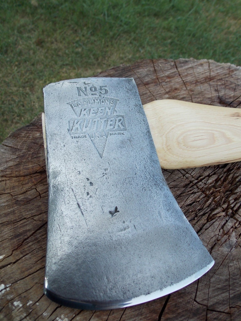 Keen Kutter No 5 single bit axe has been cleaned and sharpened and hung on a new handle.The new 35 inch American Hickory handle has been hand sanded smooth and hand rubbed with orange oil and beeswax.Comes with a handmade leather sheath.