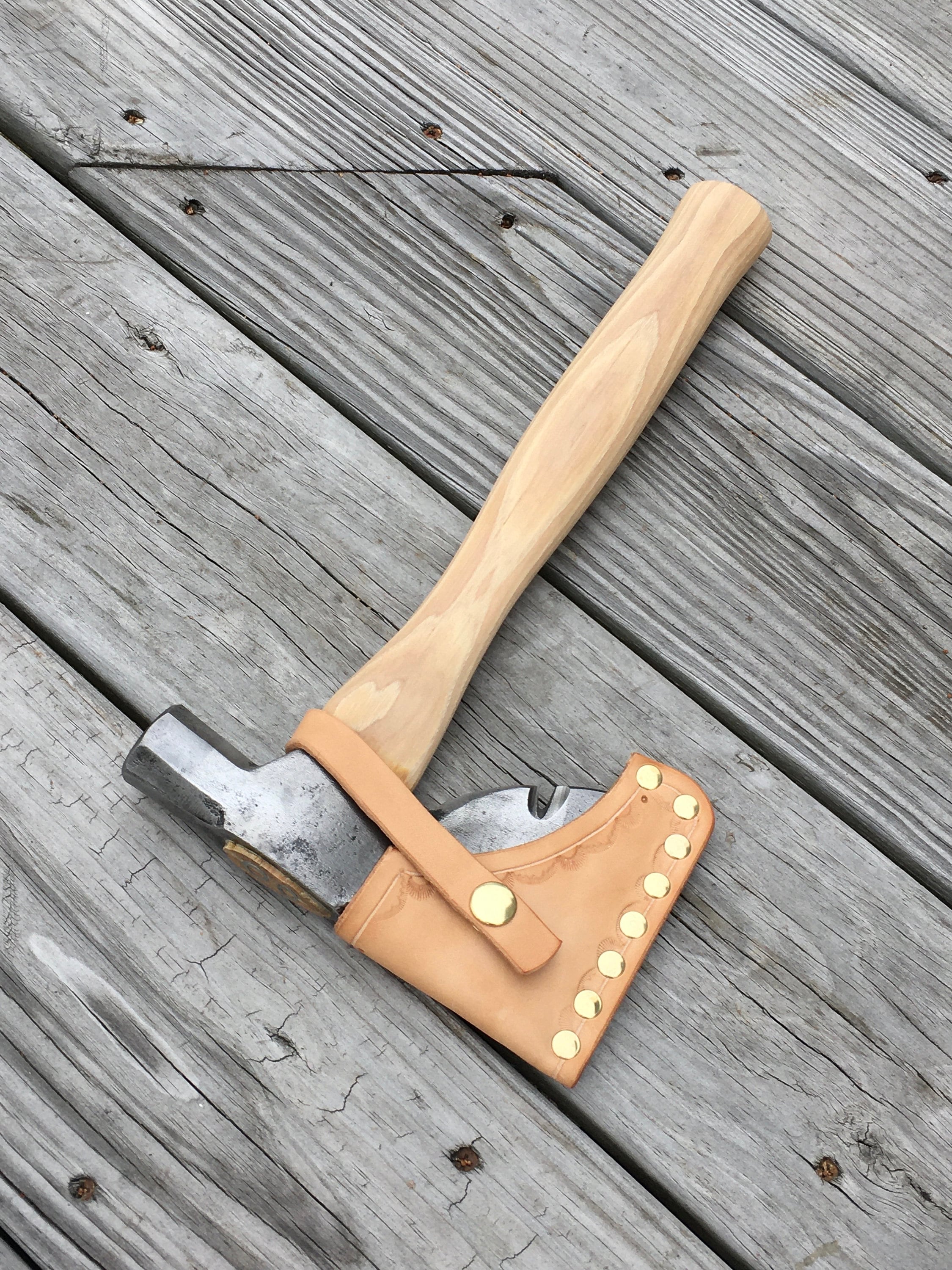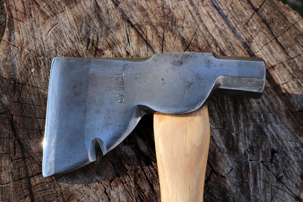 Vintage Dunlap Hatchet has been cleaned of rust and the edge sharpened .The new American Hickory handle has been hand sanded smooth and hand rubbed with orange oil and beeswax.Comes with a handmade leather sheath.