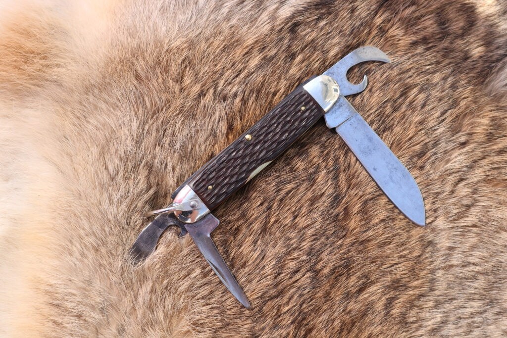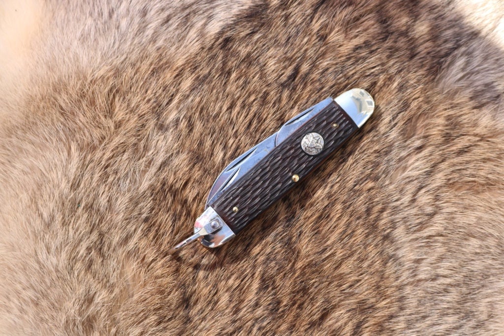 Vintage Ulster Boy Scout pocket knife has been cleaned and the edge sharpened . This is a very tight knife with brass liners .This knife is ready to go on your next adventure or add it to your vintage knife or scouting collection.