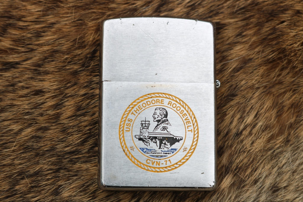 USS Theodore Roosevelt CVN-71 Zippo has been cleaned and is in good working order .The USS Teddy Roosevelt is known as the BIG STICK .The BIG STICK was launched in 1984 and commissioned in 1986 .
