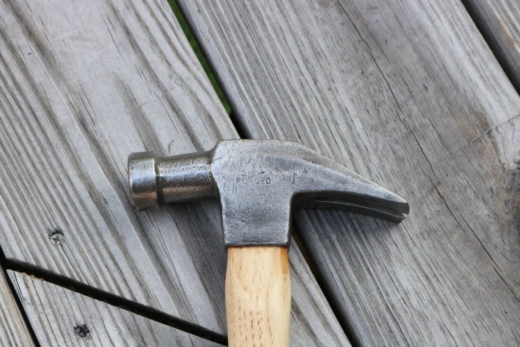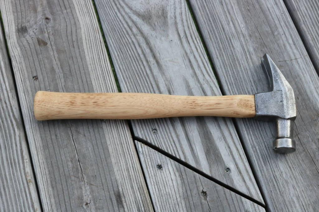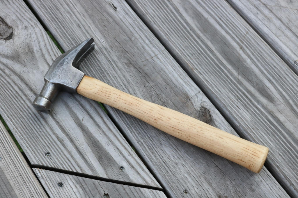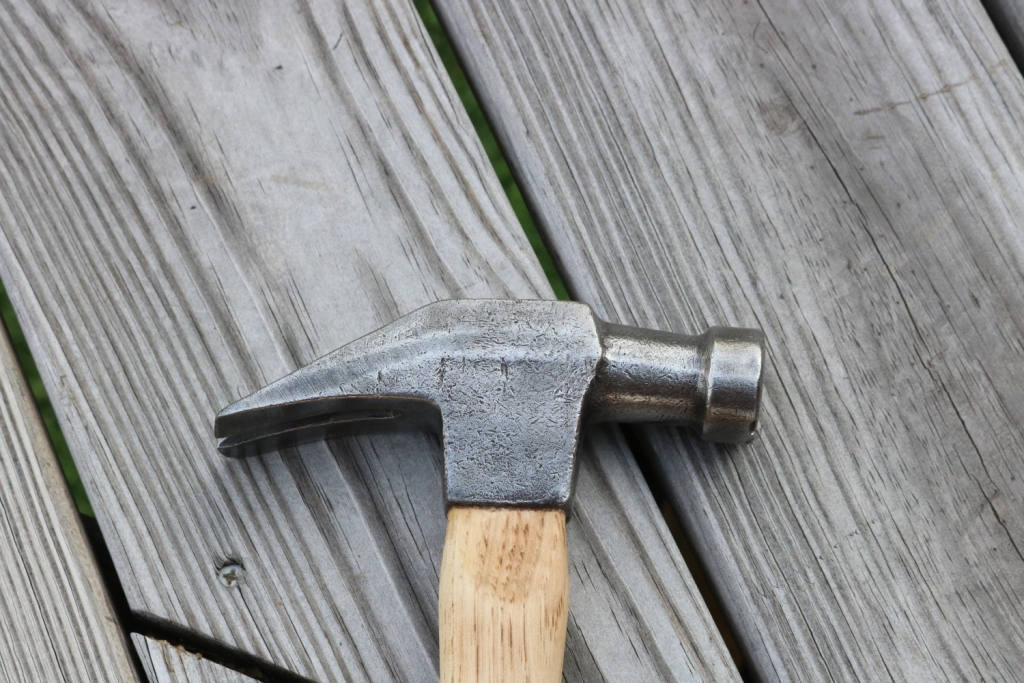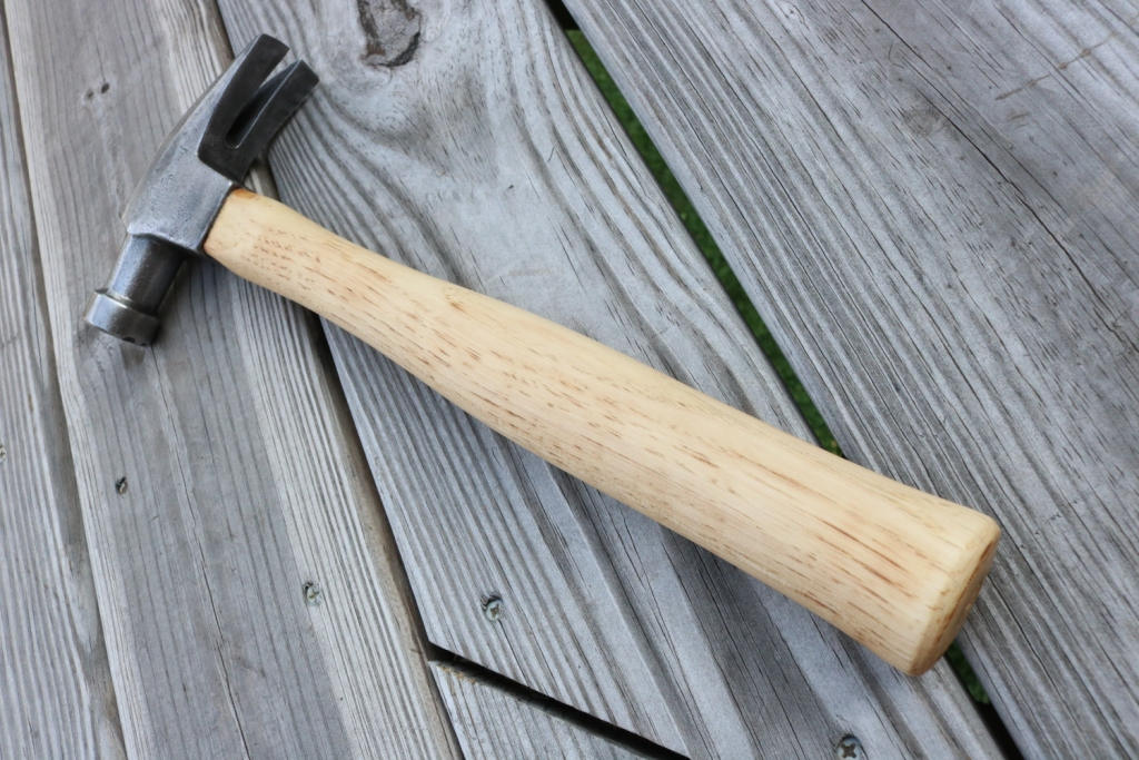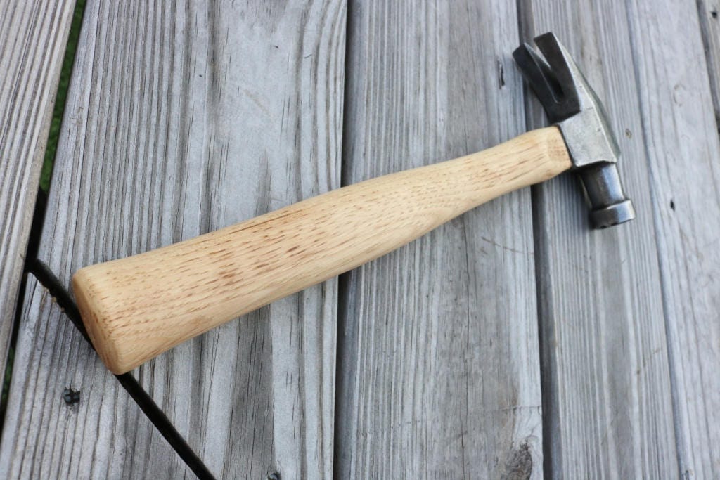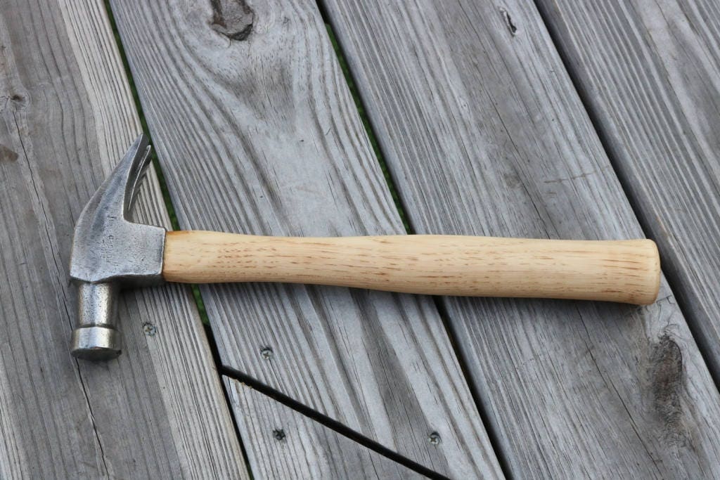 Vintage claw hammer marked drop forged has been cleaned of dirt and rust and hung on a new American Hickory handle .The new handle has been hand sanded smooth and hand rubbed with orange oil and beeswax .