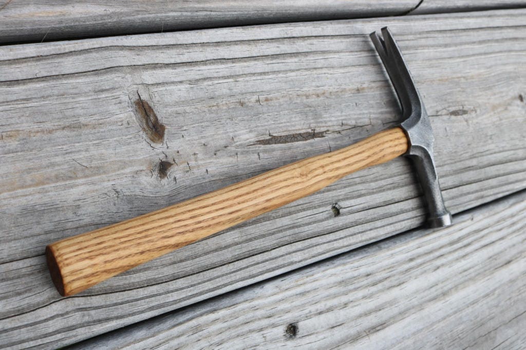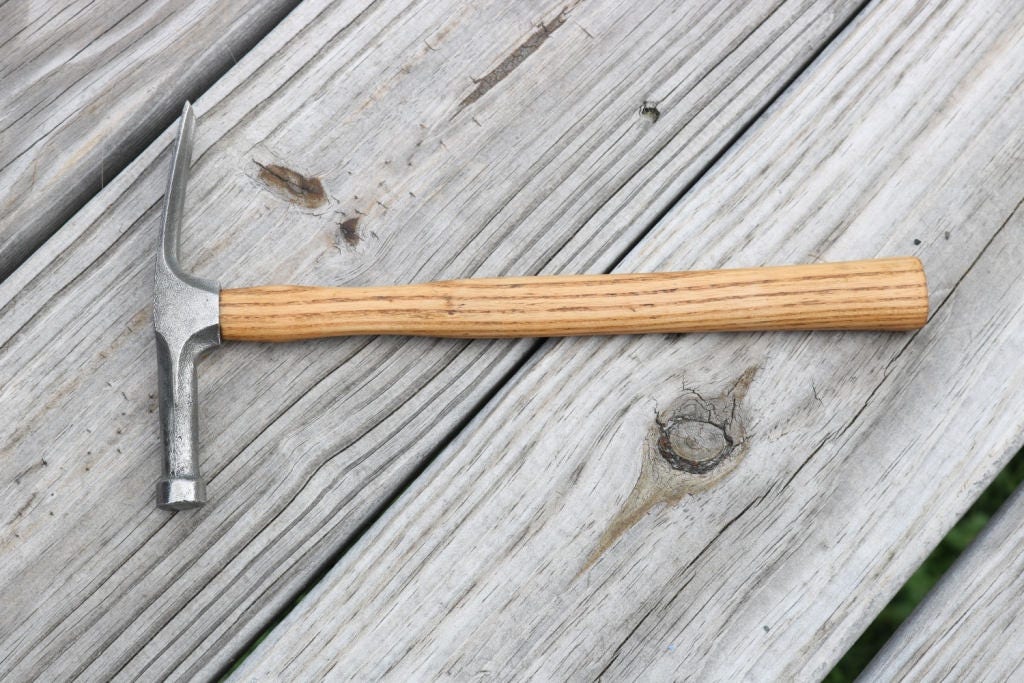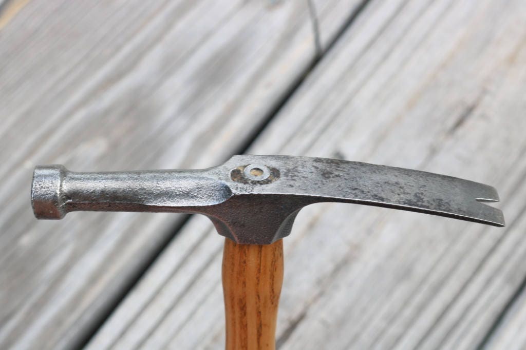 Vintage tack or upholstery hammer has been cleaned and hung on its original handle .This hammer is ready for work .