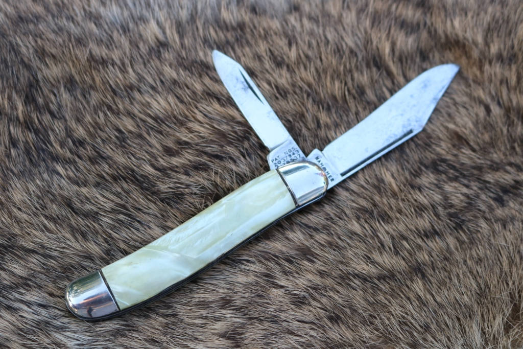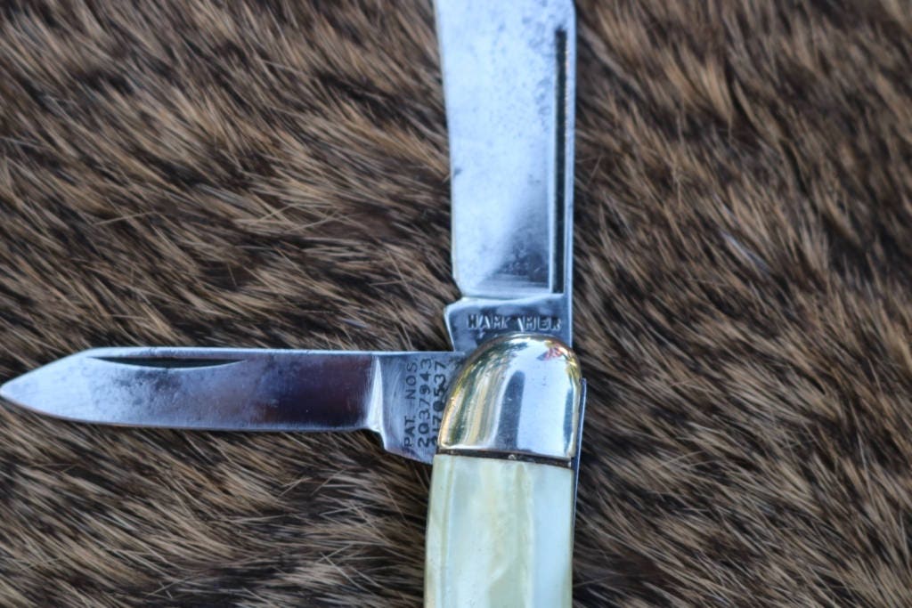 Vintage Hammer Brand 2 blade pocket knife .This knife has been cleaned and the edge sharpened .This knfe is ready for your next adventure or make it your EDC knife .Closed length is 3 inches and opened length is 5 1/4 inches .