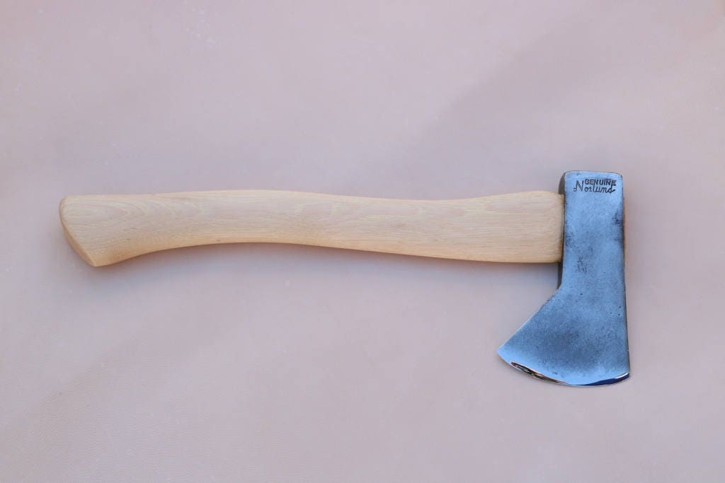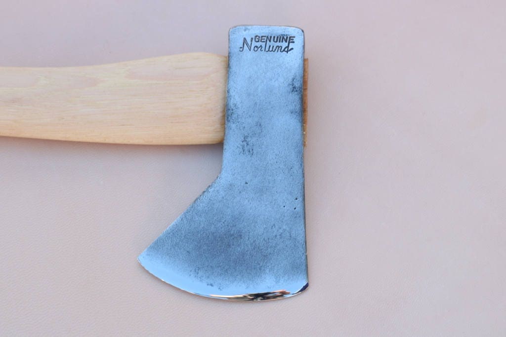 Vintage Genuine Norlund hatchet has been cleaned and sharpened .This hatchet was hung on a new American Hickory handle .The new 13 inch American Hickory handle has been hand sanded smooth and hand rubbed with orange oil and beeswax .This hatchet is ready for the woods .