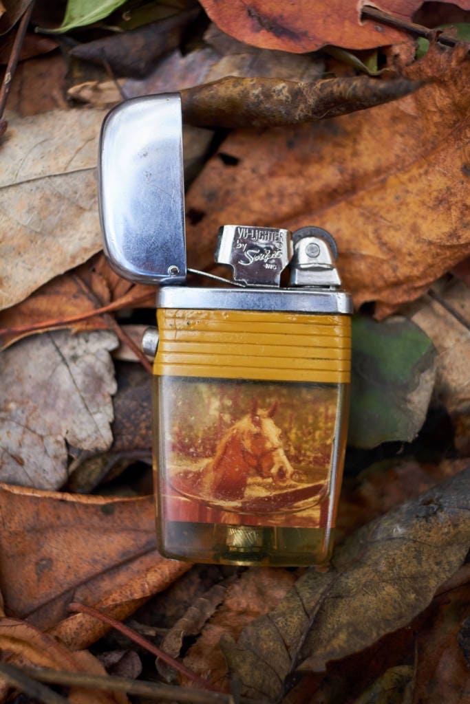 Vintage Scripto Vu lighter with horse picture is in working order and has new flint and wick .Just add lighter fluid and its good to go .