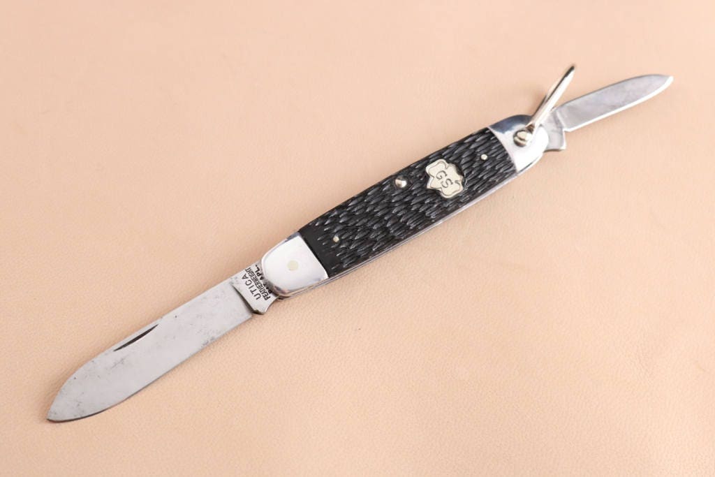Vintage Girl Scout Utica Featherweight 2 blade pocket knife has been cleaned and sharpened .This knife is in good condition and ready for your next adventure or add it to your collection .