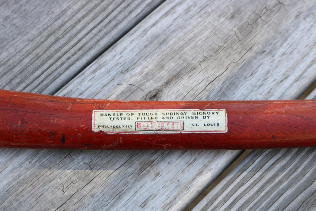 Vintage Plumb axe with original factory handle has been cleaned and sharpened .The head was removed from the handle cleaned sharpened and re hung on the original hickory handle .This axe is ready for work or add it to your vintage axe collection .length 34 inches weighs 4 lb 10 oz