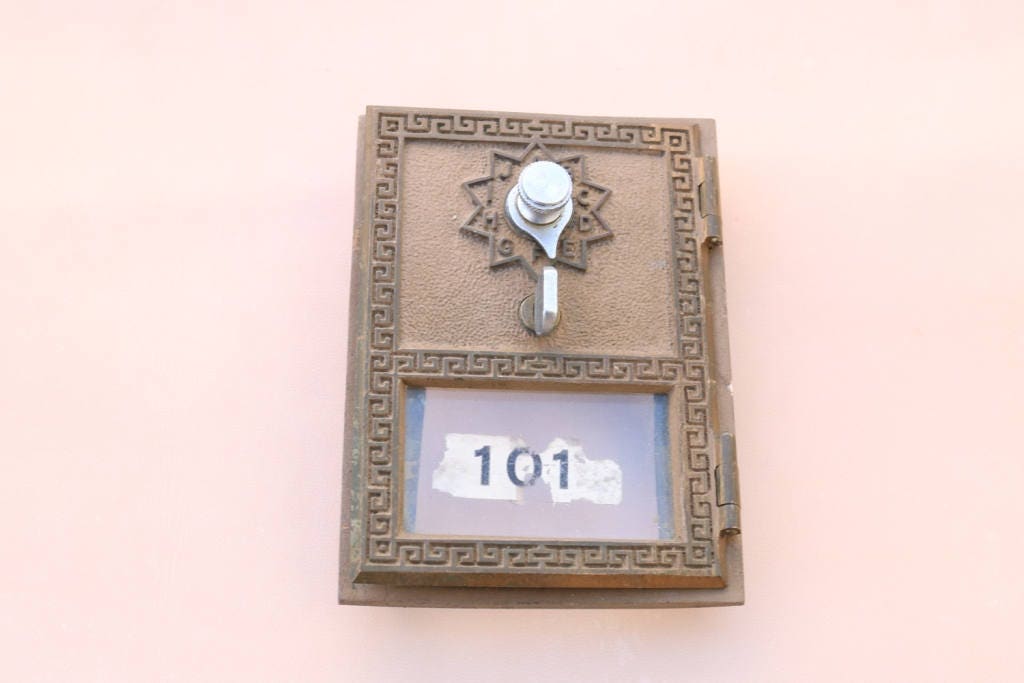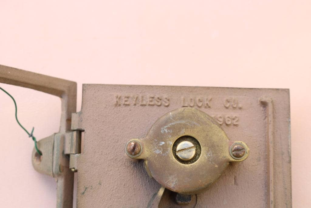 Vintage mailbox door with working lock made by the Keyless Lock Co .