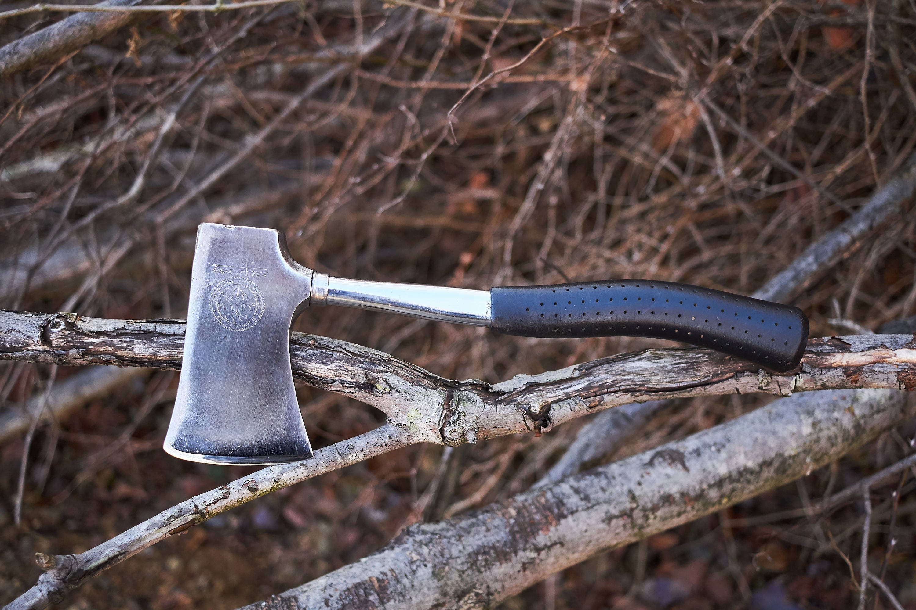 Vintage True Temper Boy Scout Hatchet has been cleaned and sharpened .This vintage hatchet is in very good shape and ready for your next outdoor adventure . Length is 13 inches and weighs 1 lb 12 oz .Comes with a handmade leather sheath .