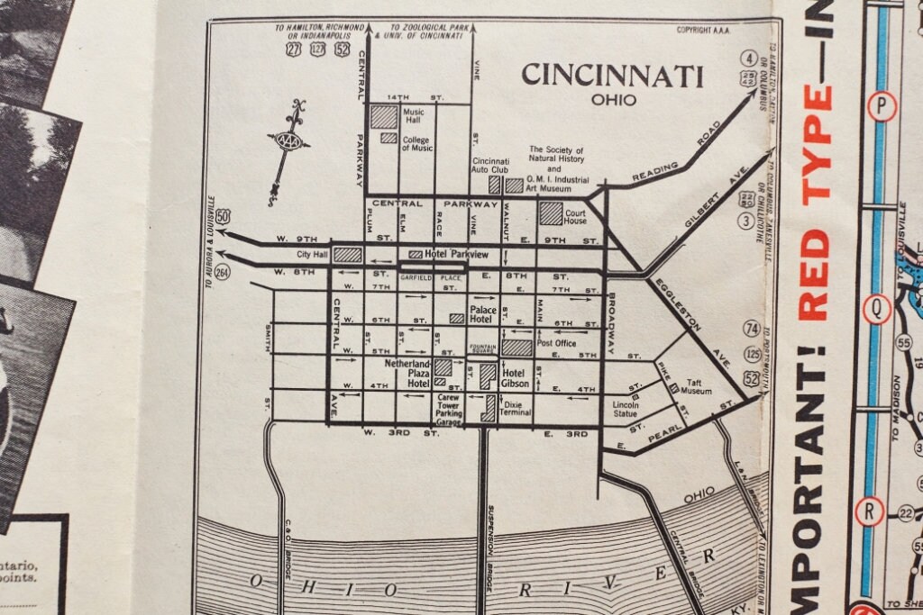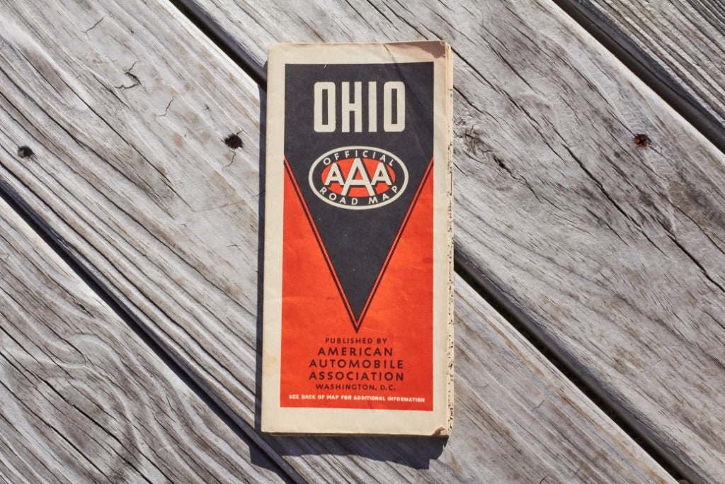 Vintage Ohio AAA road map from 1938. This Official AAA road map would make a great decoration for a man cave or a kids room.