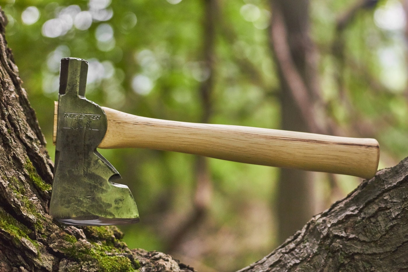 Vintage True Temper hatchet has been cleaned and the edge sharpened .This hatchet was hung on a new American Hickory handle .