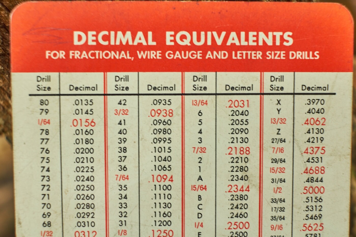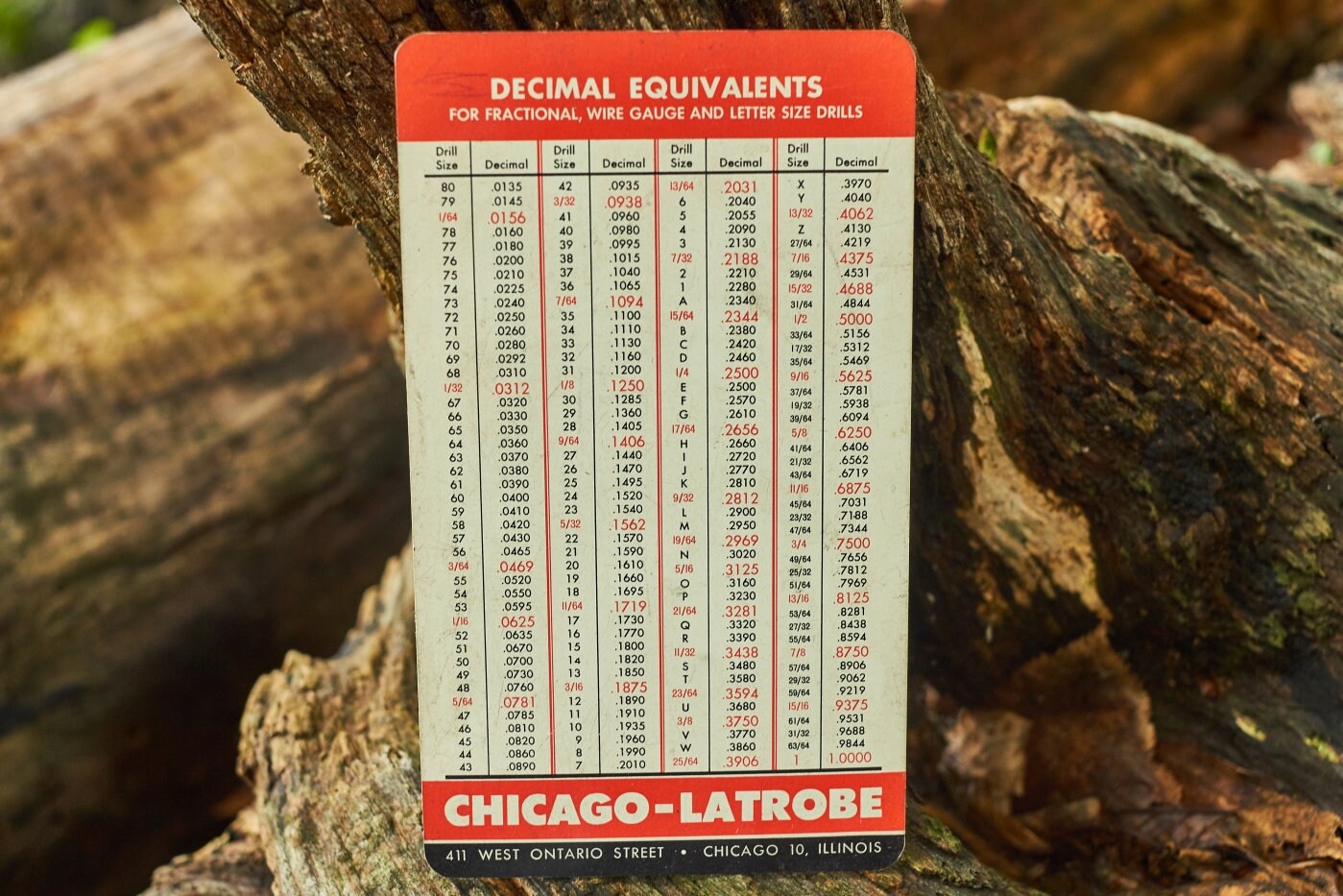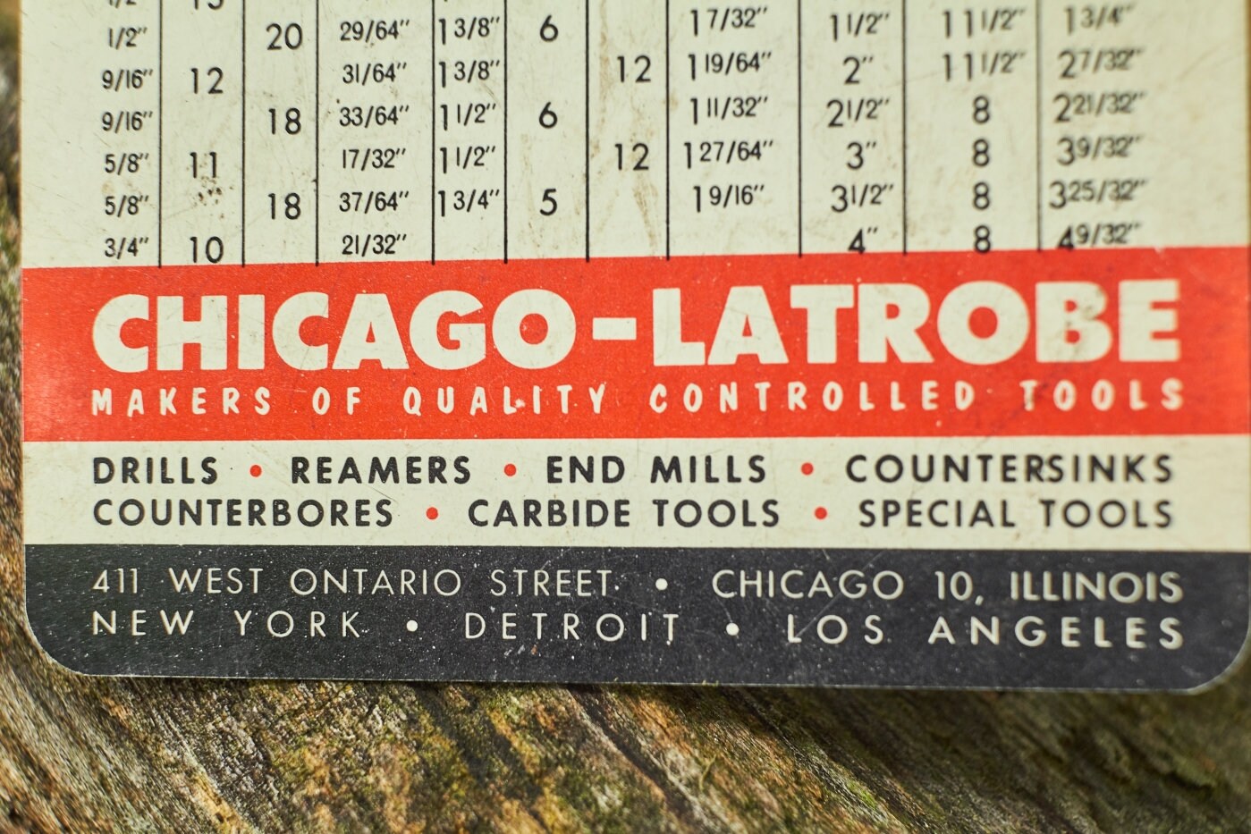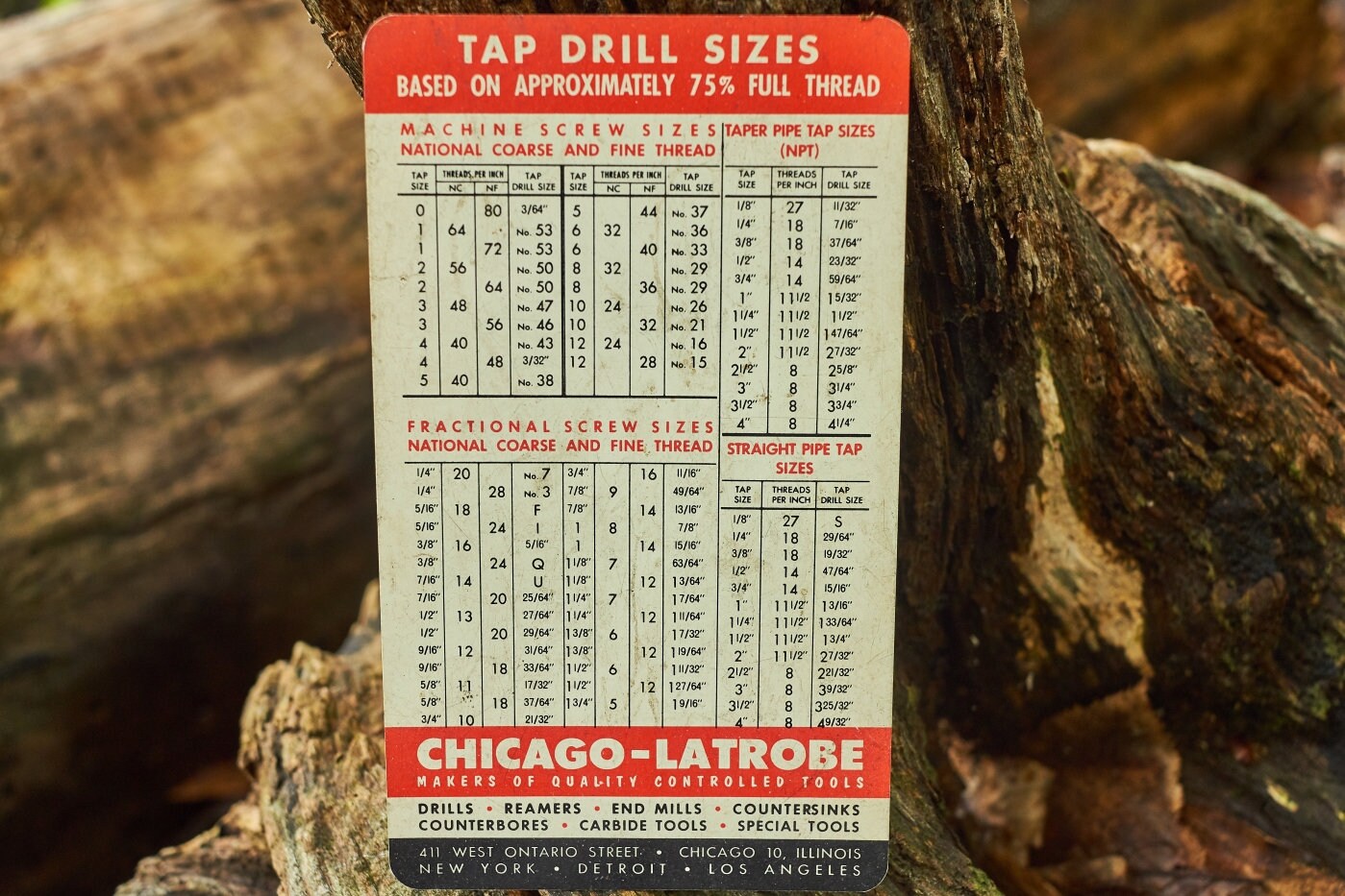 Vintage Tap and Drill Size chart from Chicago-Latrobe. Vintage pocket chart.