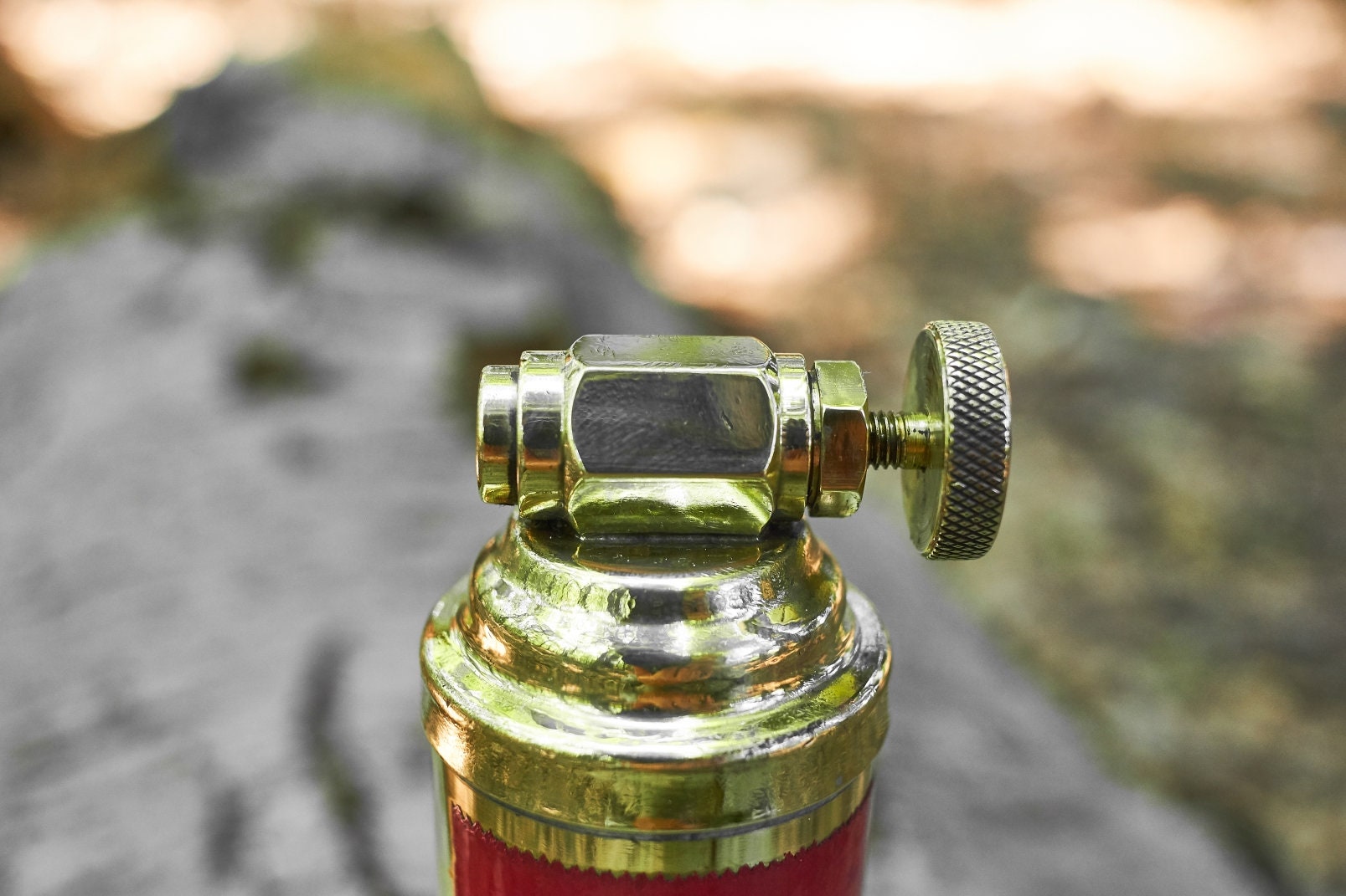 Vintage brass Presto fire extinguisher has been cleaned and polished .This is a very neat collectible and would make a great addition to any collection .length is 5 1/2 inches .
