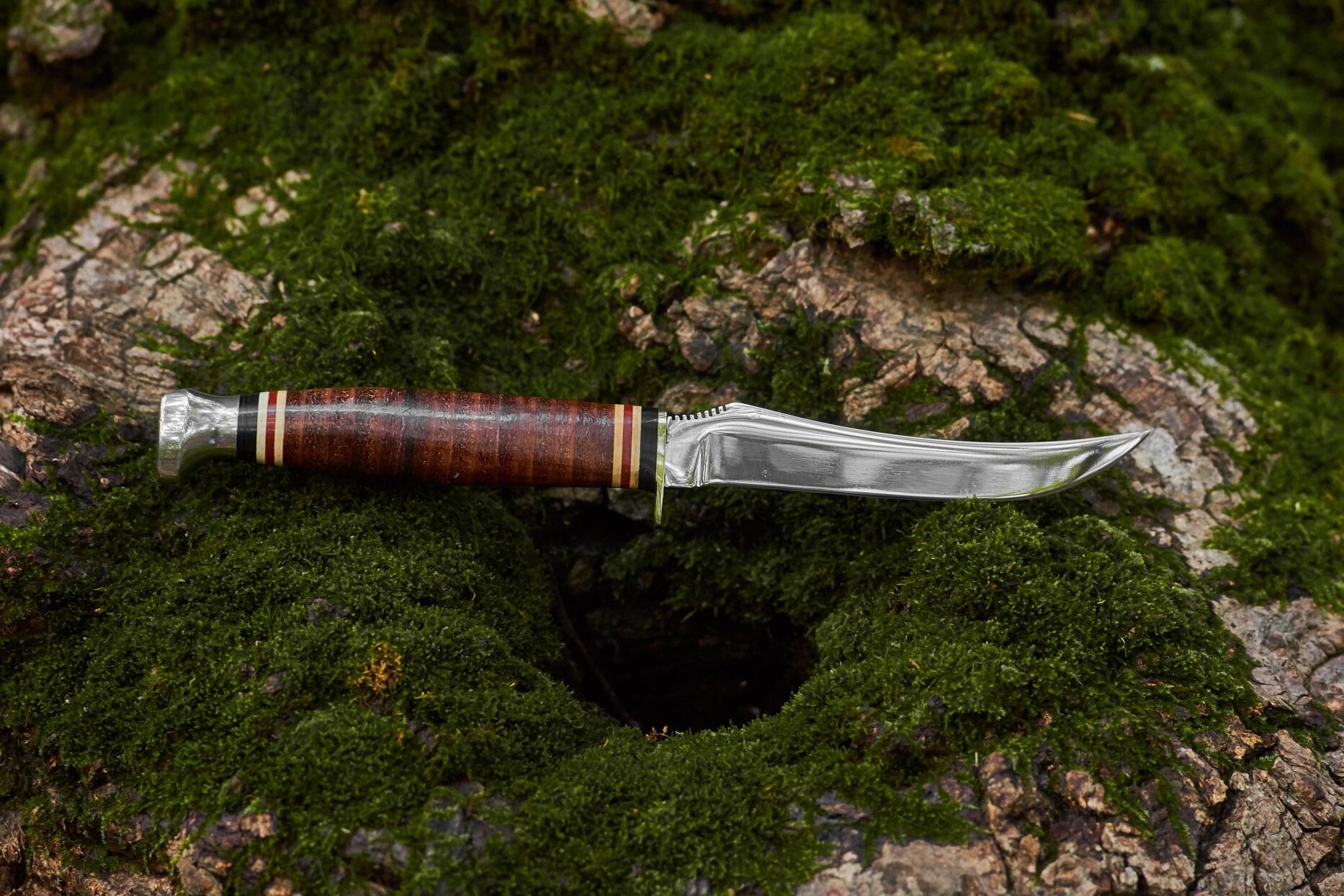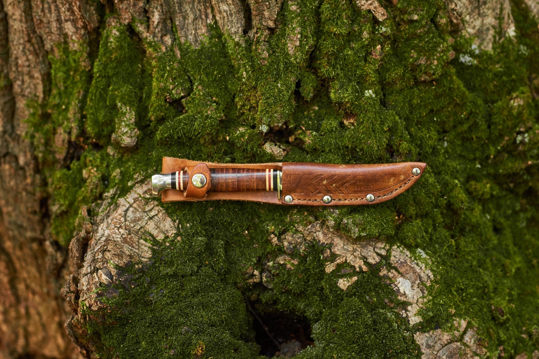 Vintage Kabar 1228 fixed blade nife has been cleaned and sharpened .The knife is in very good condition and ready for your next adventure ,hunting ,fishing or camping trip . The original leather sheath is in good condition and ready to carry this knife any where .This is a sleek knife measuring 7 1/8 inches overall and the blade length is 3 1/2 inches .