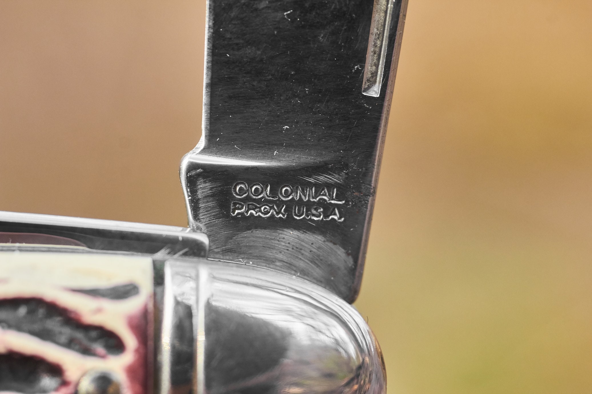 Vintage Colonial pocket 2 blade knife has been cleaned and sharpened . This is a very nice Colonial ready for your pocket or add it to your vintage knife collection . Closed length is 3 1/2 inches and open length is almost 6 inches .