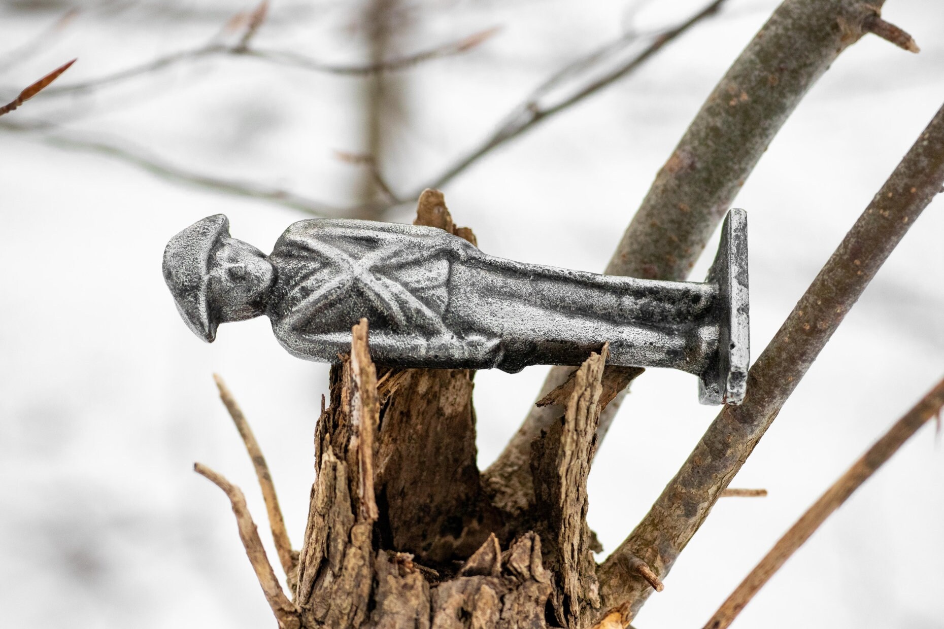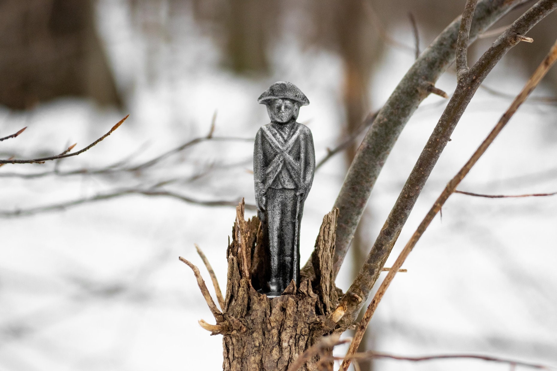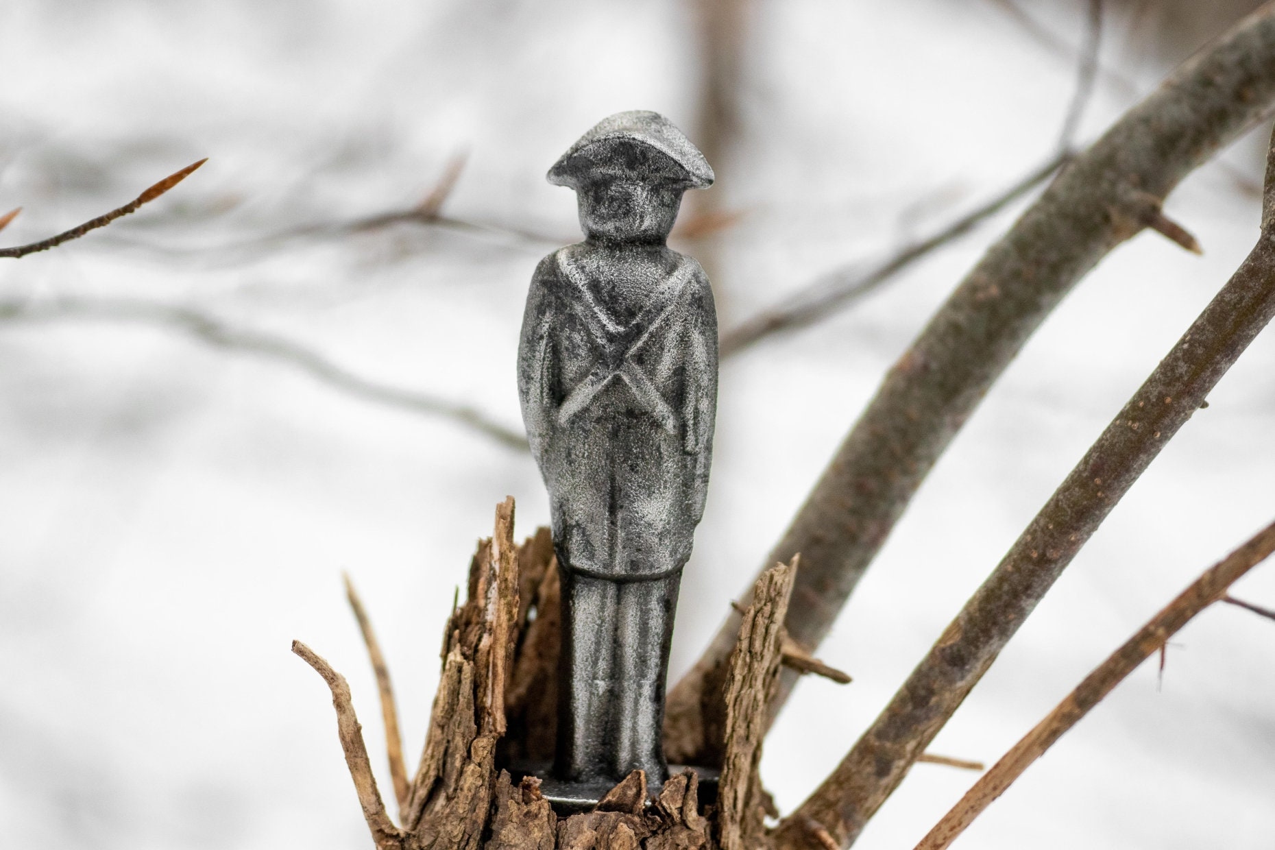 Vintage cast iron soldier stands 5 inches tall and weighs 11.5 oz . This soldier is in good condition and ready for your collection .