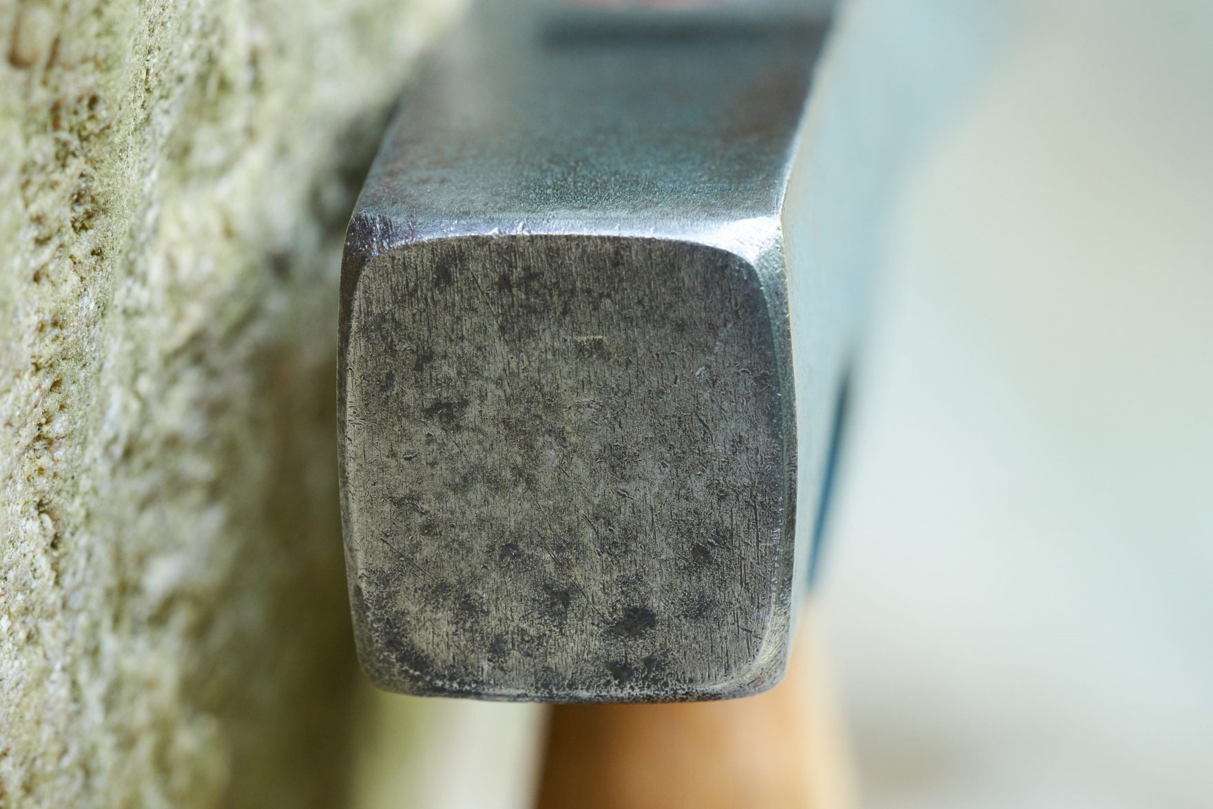 Vintage Power Kraft masonry hammer with original handle has been cleaned and is ready for work . The length is 11 inches and weighs 24 oz .