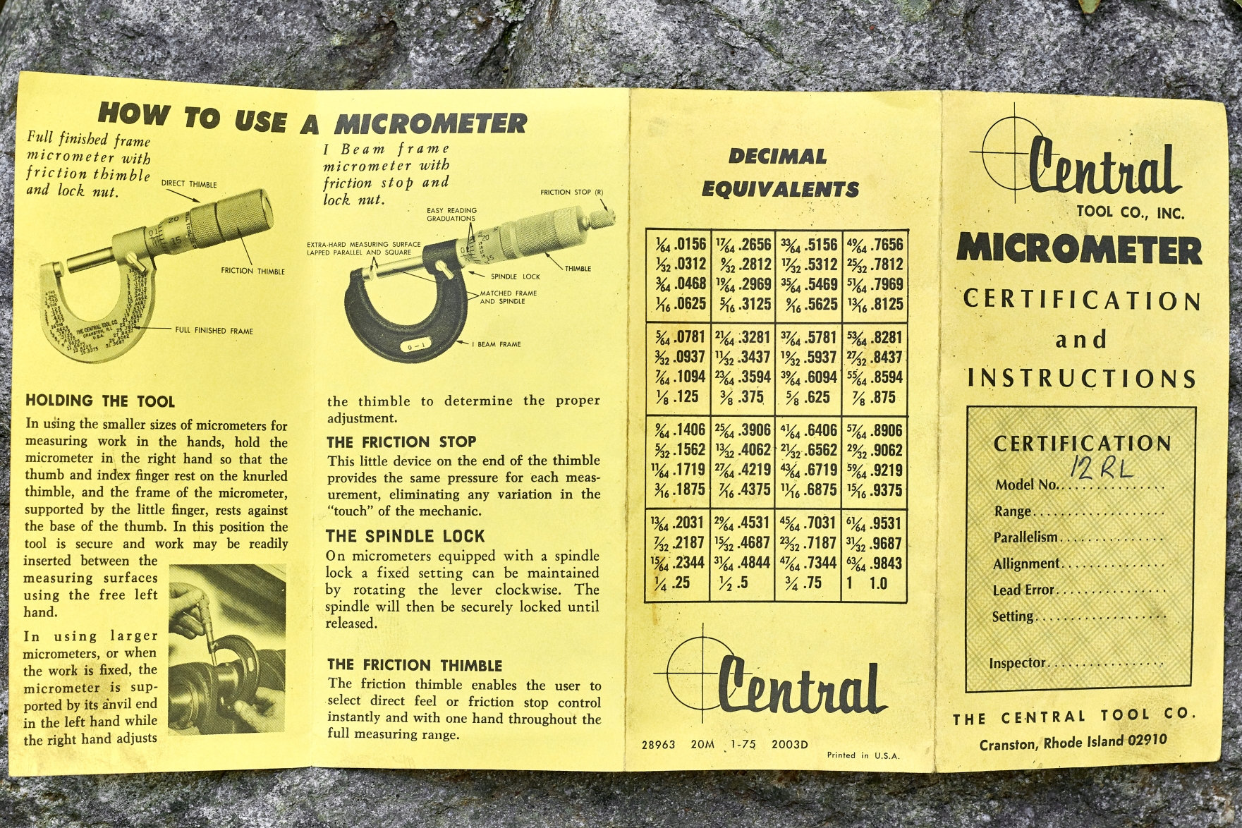 Vintage Central Tool Company micrometer is in good working order .