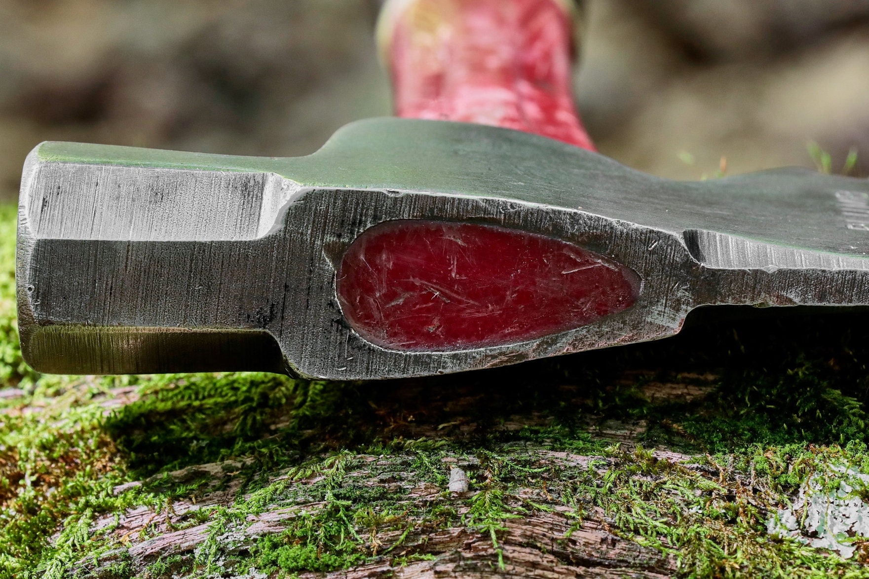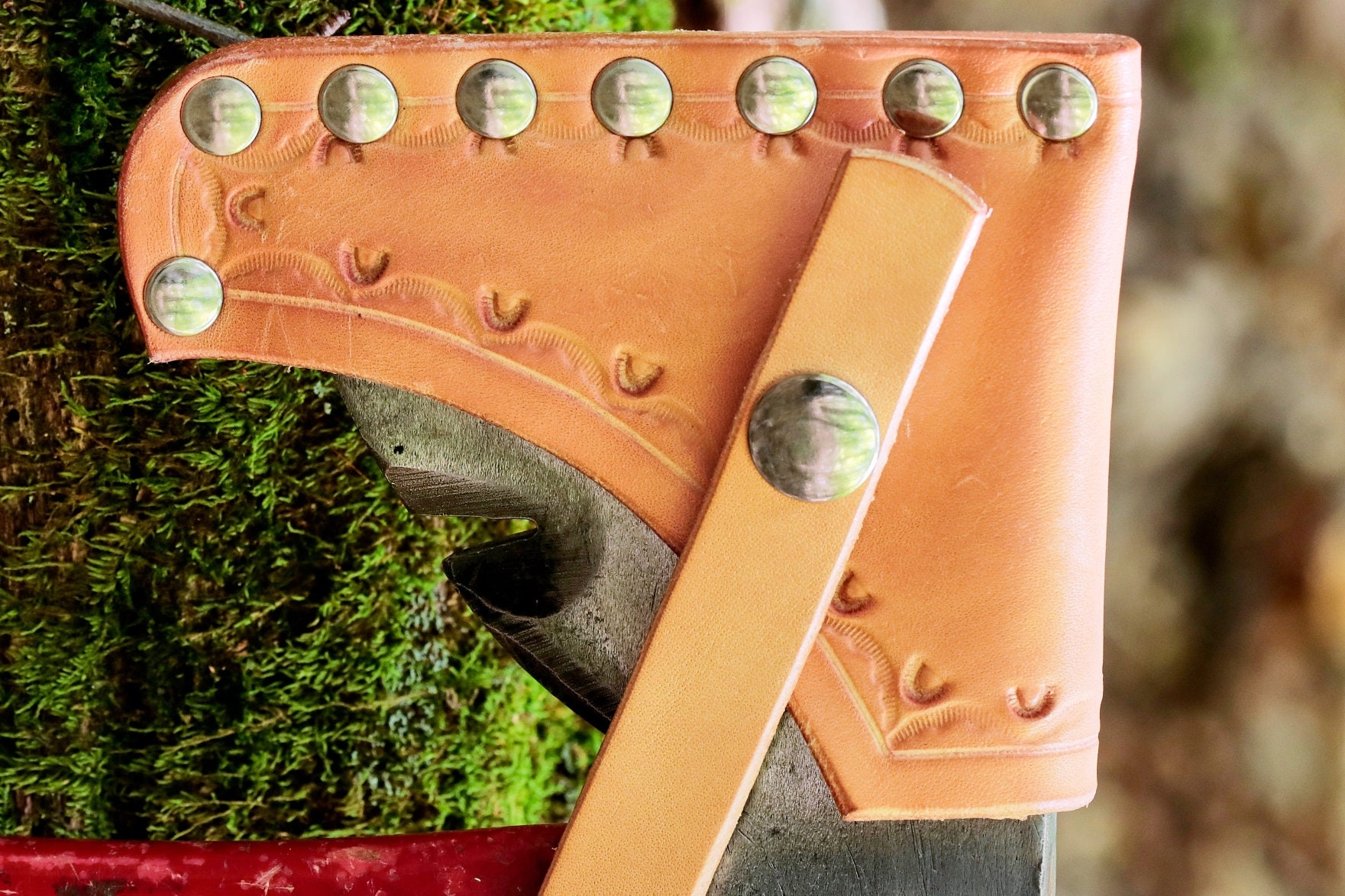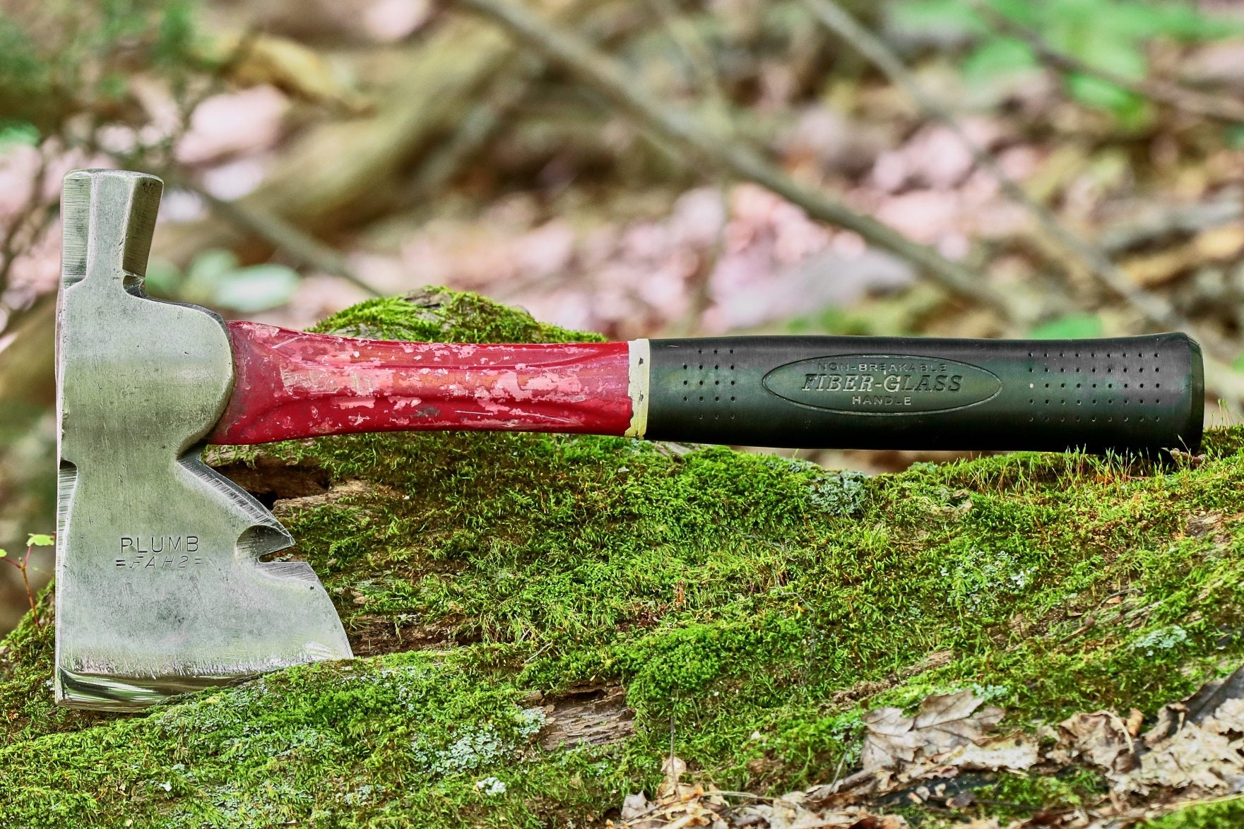 Vintage Plumb Hatchet with fiberglass handle has been cleaned and sharpened . The custom leather sheath is made from 8/9 oz veg tan leather and treated with Bickmore Heavy Duty Leather Preservative . This hatchet is very solid and ready for work . Length 13 inches weight 2 lb 4 oz