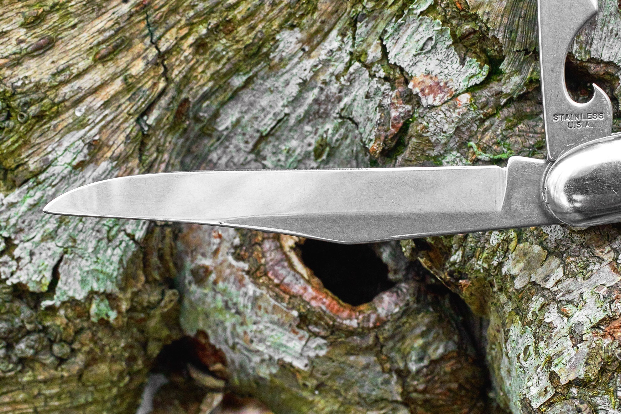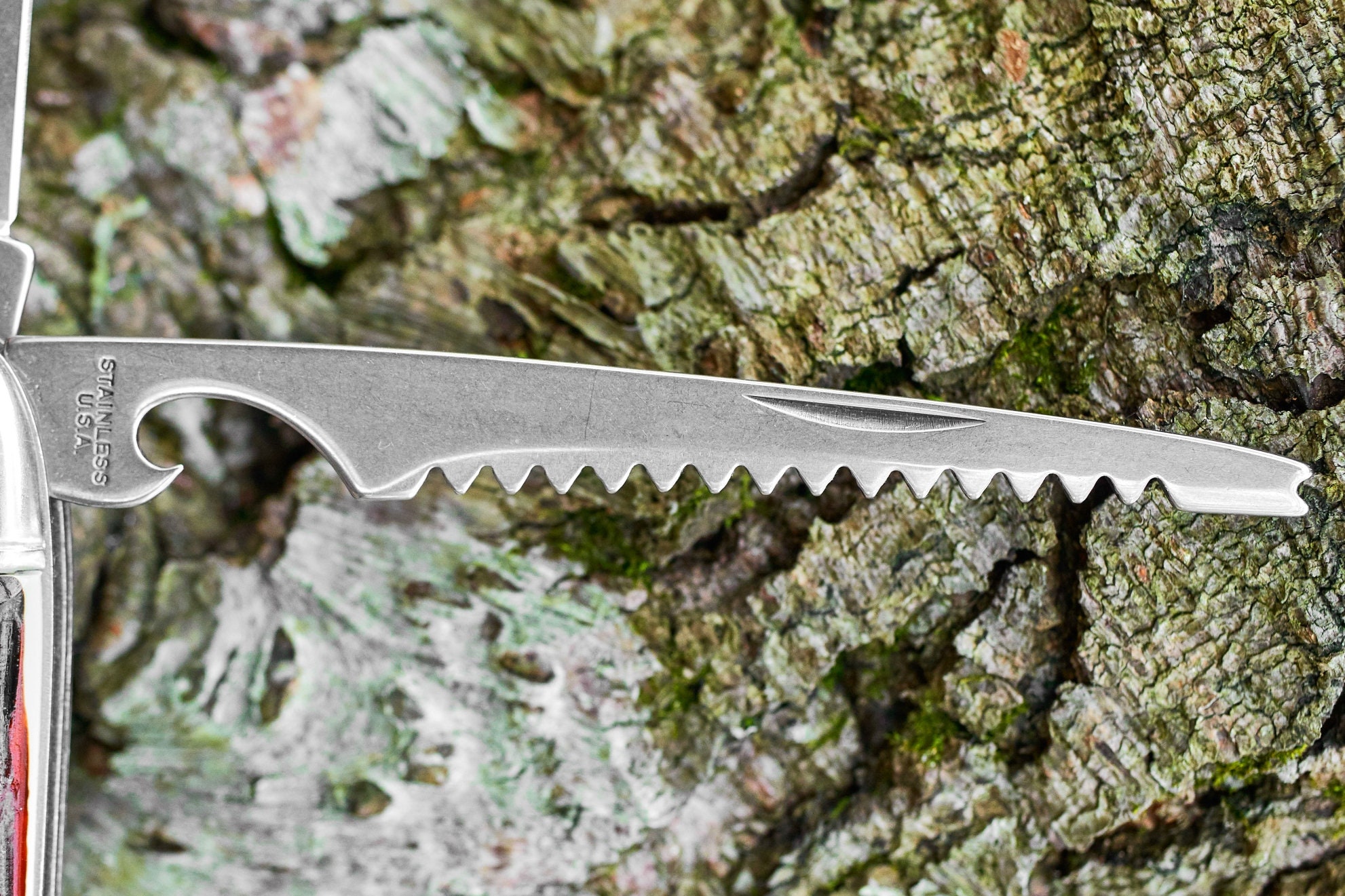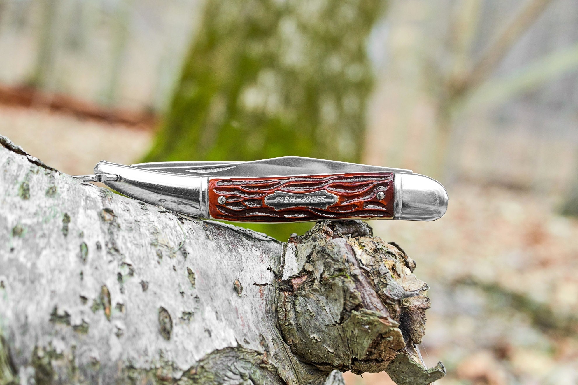 Vintage Colonial fish knife with original plastic packaging has never been used or carried . This knife is in good condition and ready for your pocket or add it to your vintage knife collection . Closed length is 5 inches and open length is 8 7/8 inches . 2 blade pocket knife has 1 straight cutting blade and 1 blade with fish scaler , fish hook remover and bottle opener .
